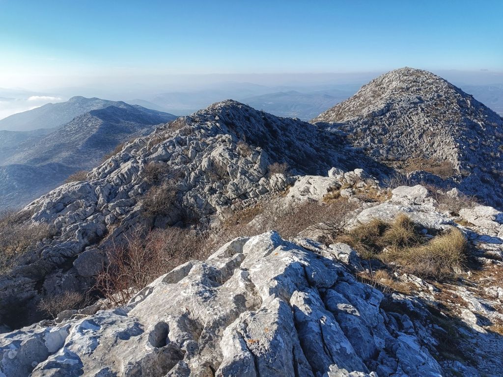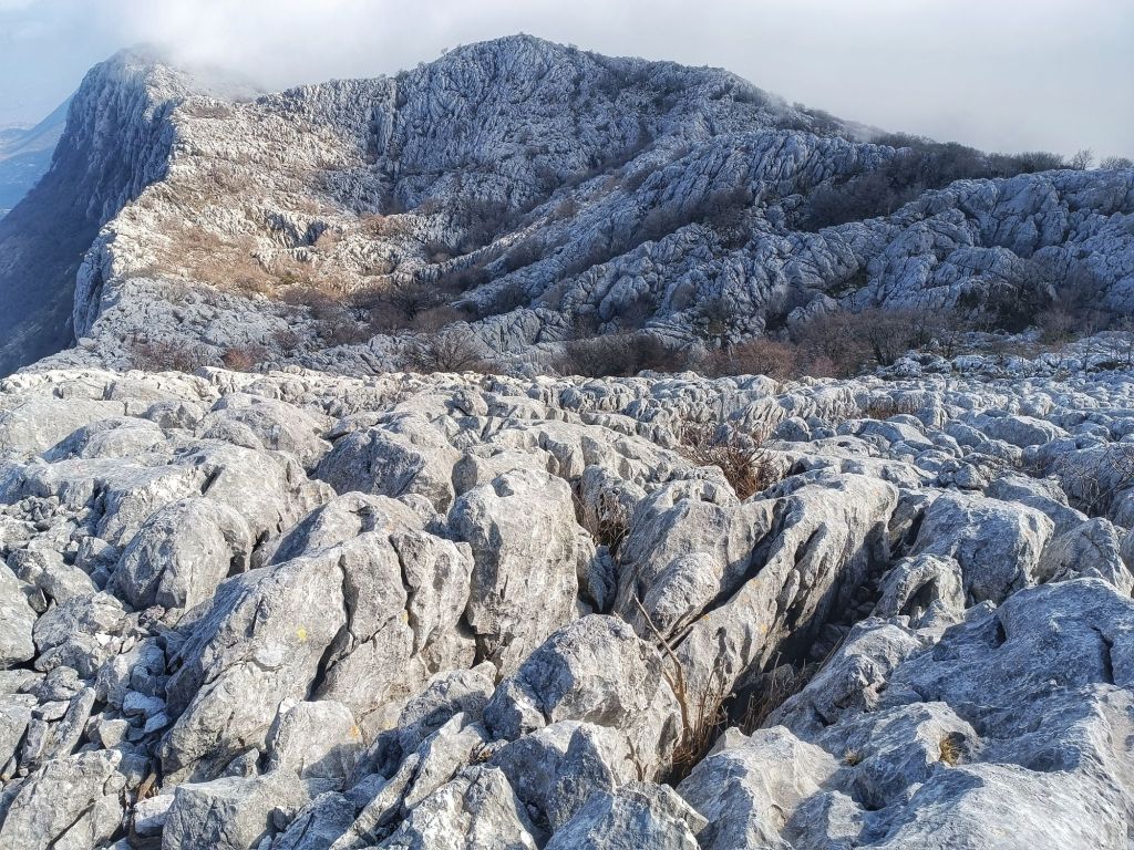 — Ovo sam ja. — kaže Mosor. Škrape, gudure, ponikve, uski procjepi, izbrazdane ploče i klisure koje nadvisuju rijetku vegetaciju. I oblake koji su prekrili obližnje gradove, more i otoke. Samo se povremeno čuju zvona u daljini, jedna ptica je u letu, tu i tamo neki glasovi, ali nikoga na stazi cili dan.