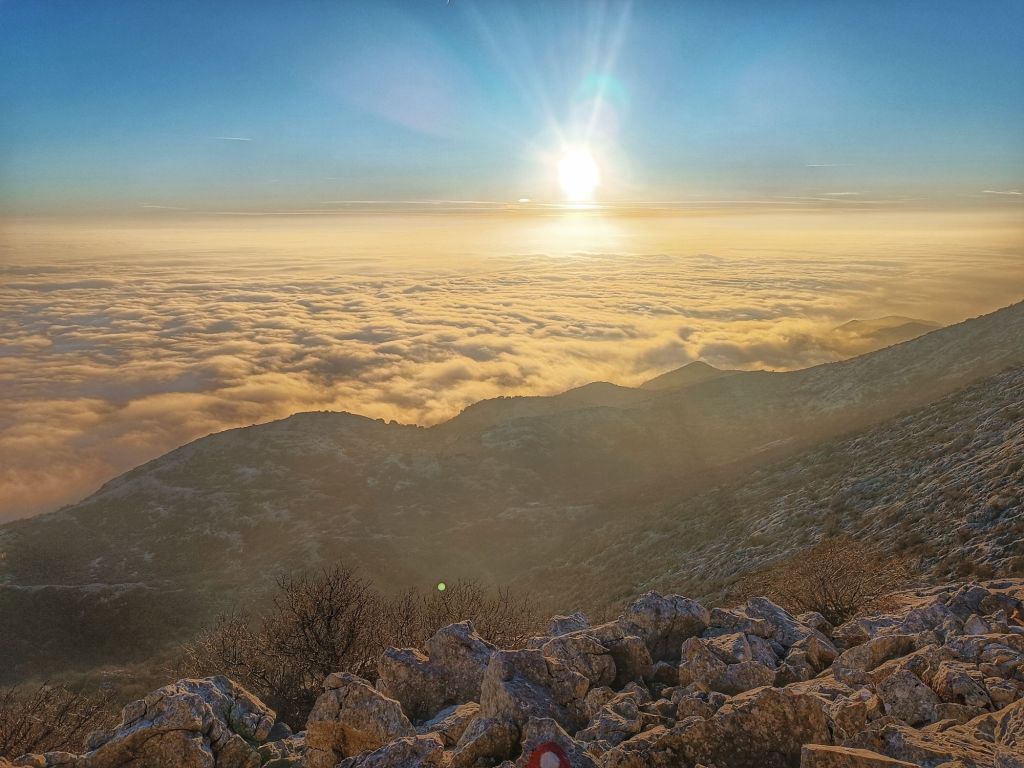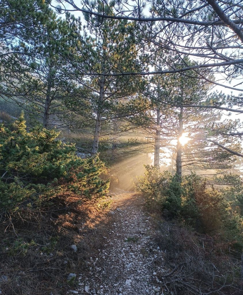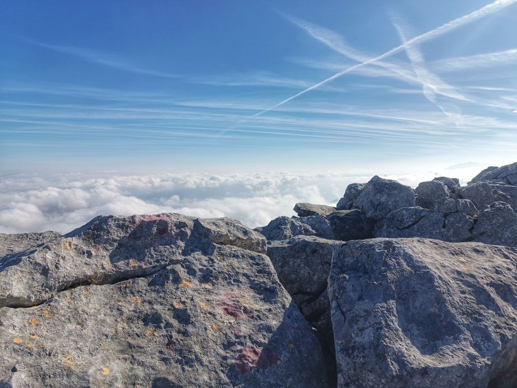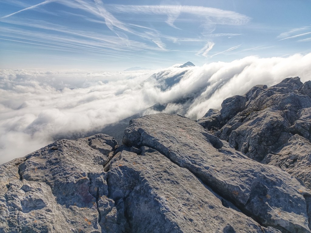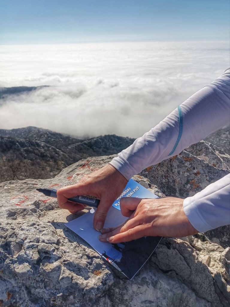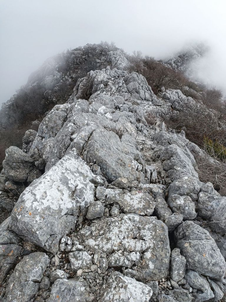 Jutro u planini je uvik posebno, ovo je mirno, uronjeno u oblake i sumaglicu koja se motala oko nogu, smanjujući vidljivost i tražeći sloj više odjeće. Botajna je nepravedno zapostavljeni vrh. Meki puteljci su kao usamljene oaze i spas za otežale noge. Kozik samo što nije, ok ipak još nije. Iza brda je novo brdo, ponavljam gradivo. Na vrhu Sv. Jure ima i ljudi, o-hoo, zaslužuje jednu poštenu pauzu od pola ure. Put do Trpošnika je začudan i mukotrpan. Surovi kameni oblici dominiraju prostorom iziskujući krajnji oprez i poniznost.